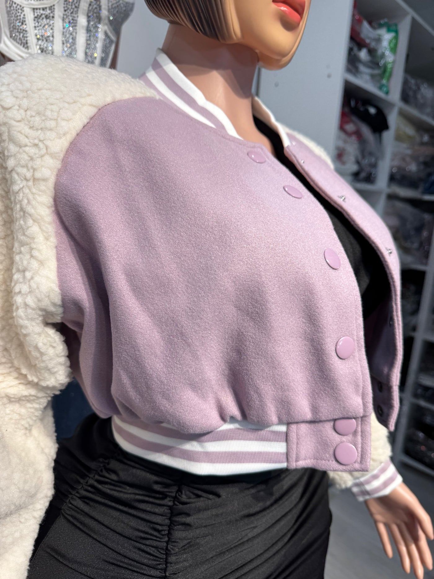 J308 Frost Varsity Teddy Jacket - Pink / Small