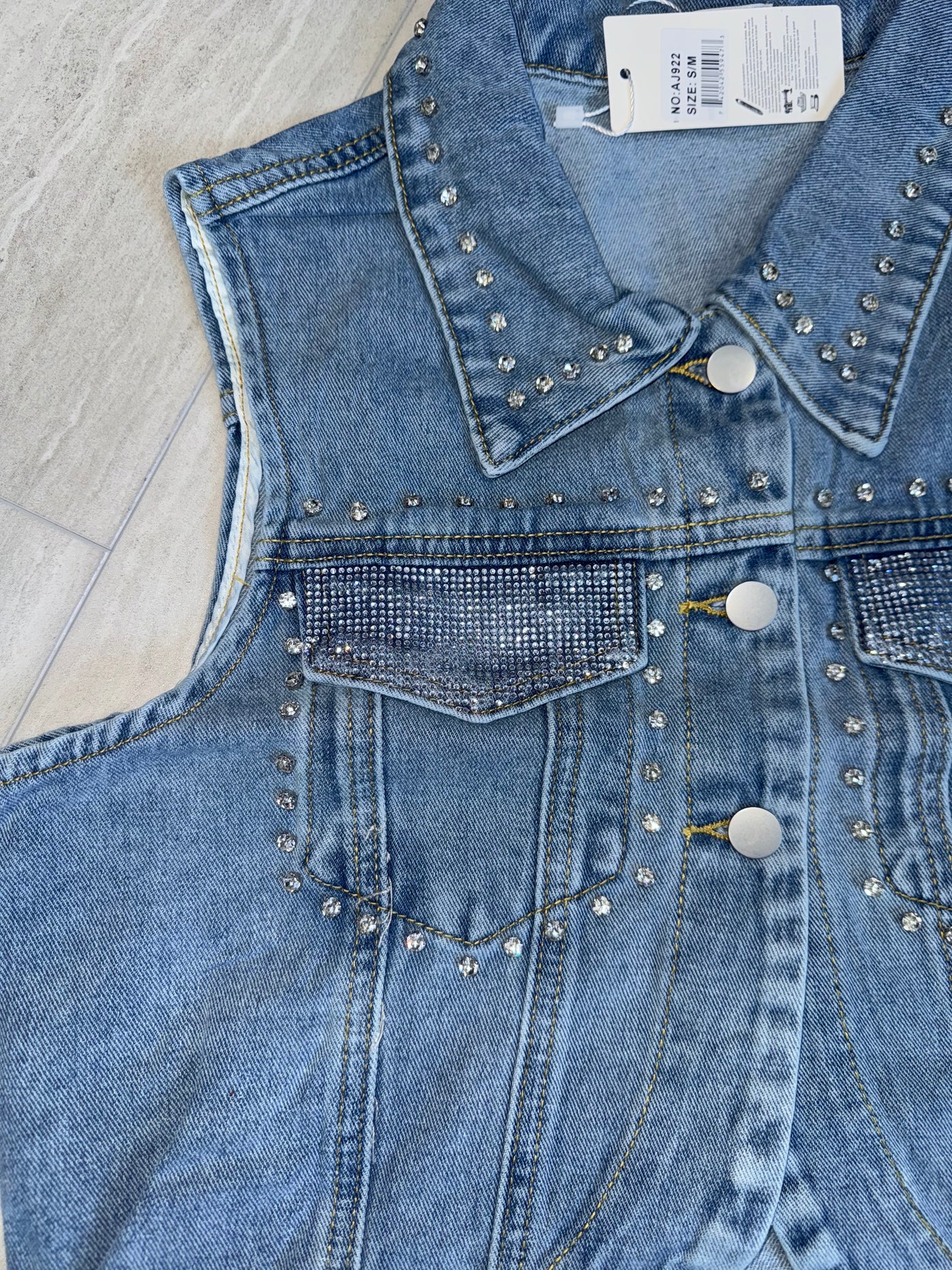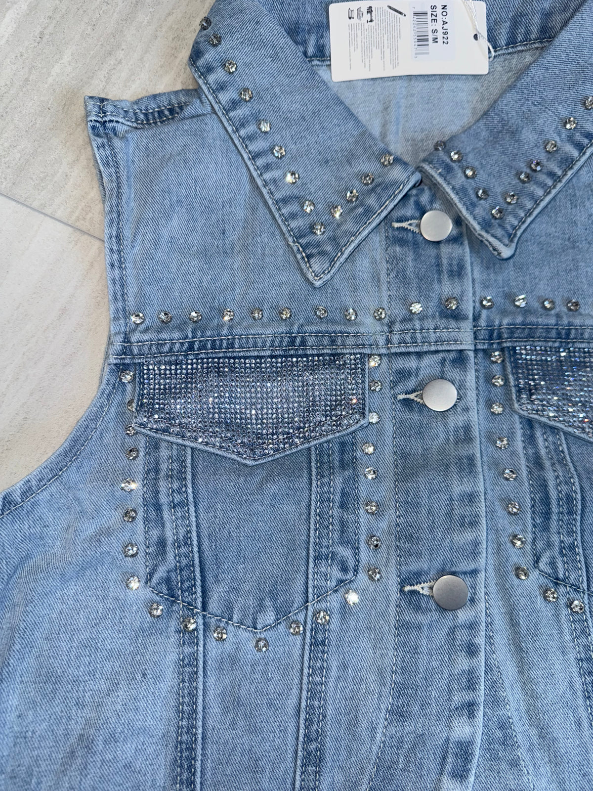 AJ922 Crystal Glow Denim Vest