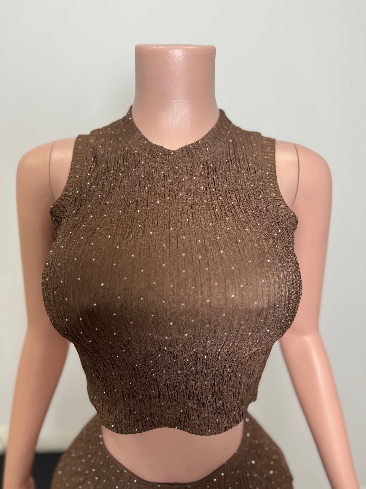 IRIS-1RH 2 Piece Set of Casual Texture Lounge Sleeveless - Brown / Small