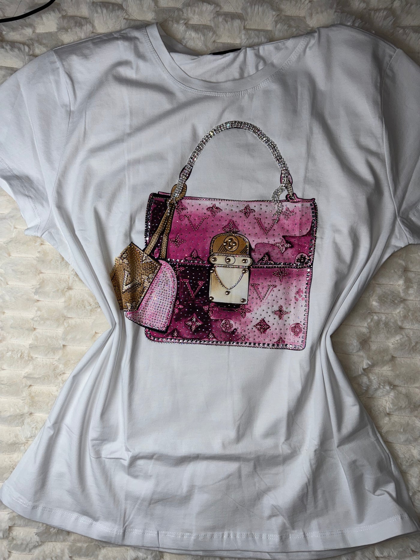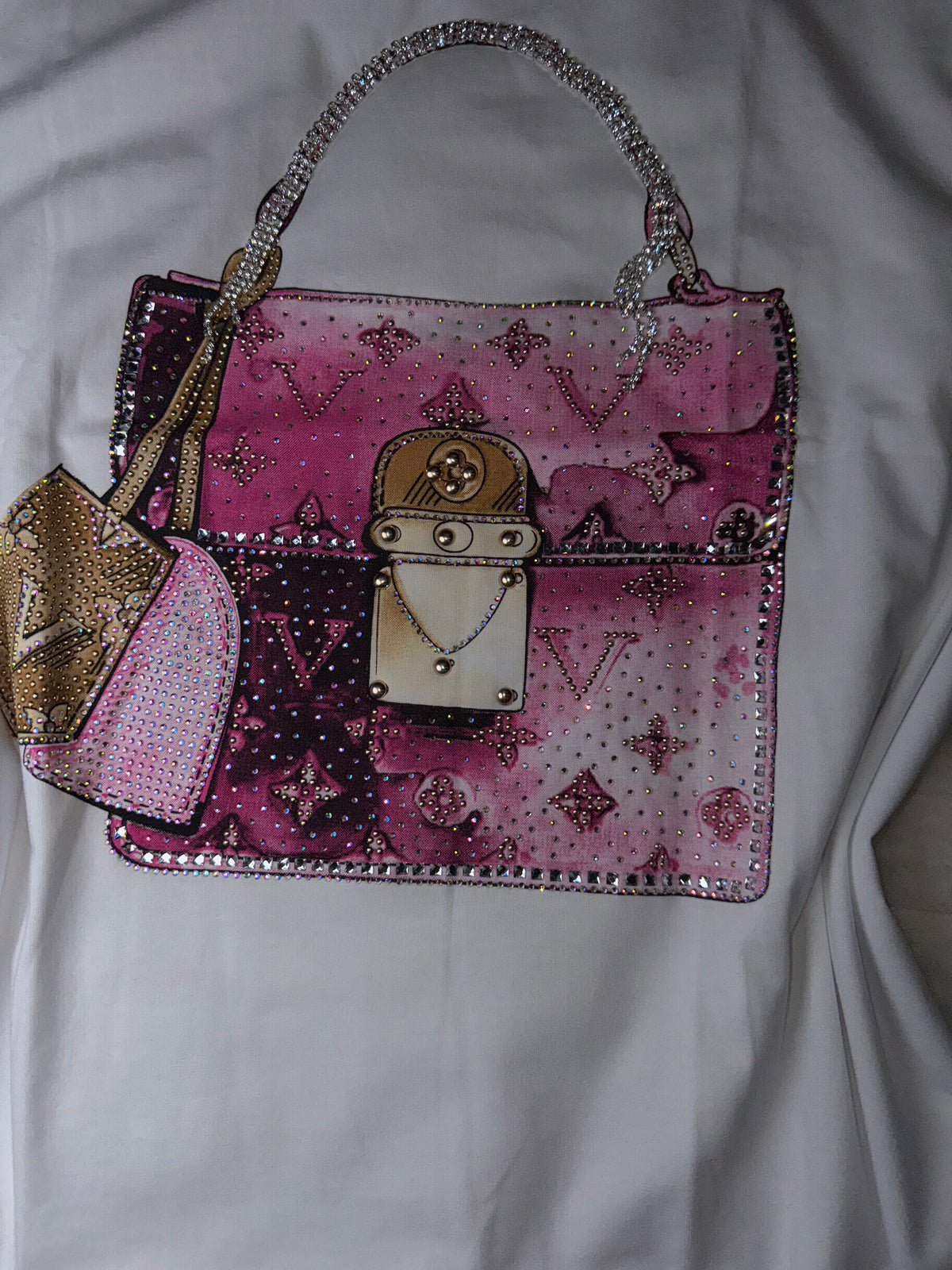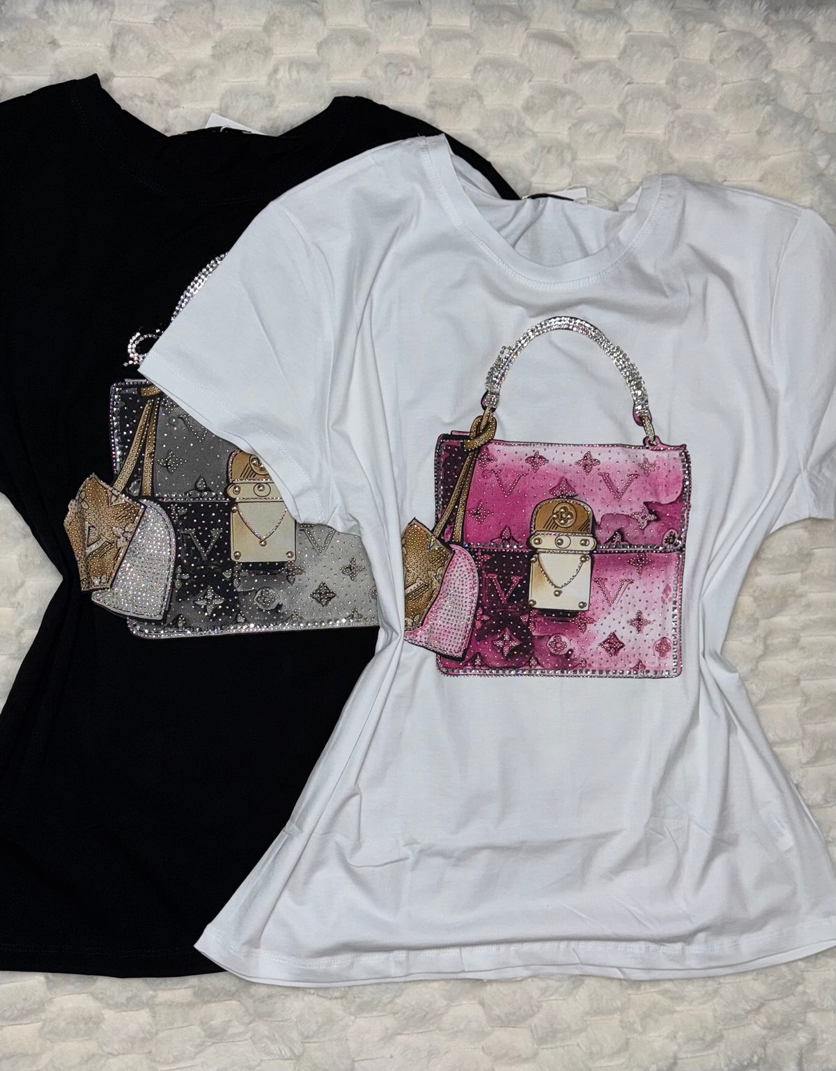 K0039 T-Shirt with Rhinestones Purse Design - Black / Small