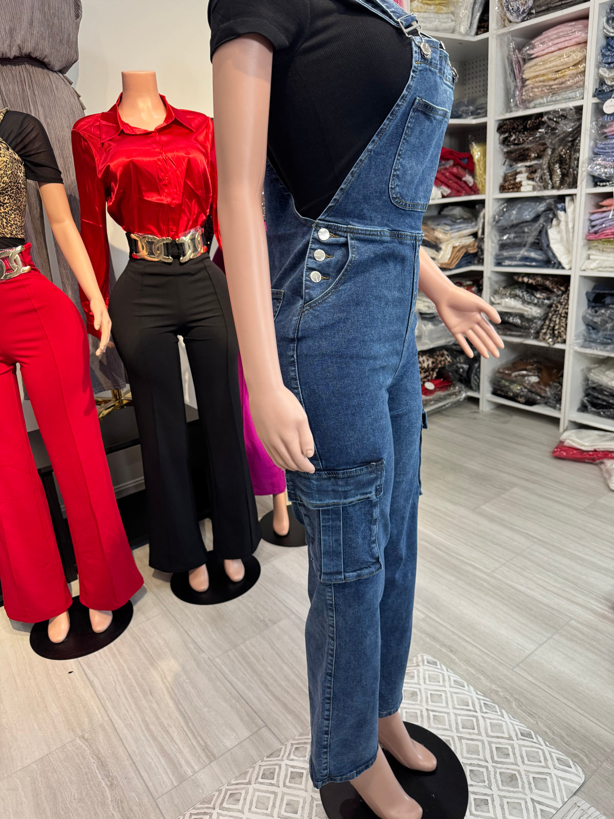 Inform when this item available LA8855 Jean Denim Overall Style Cargo