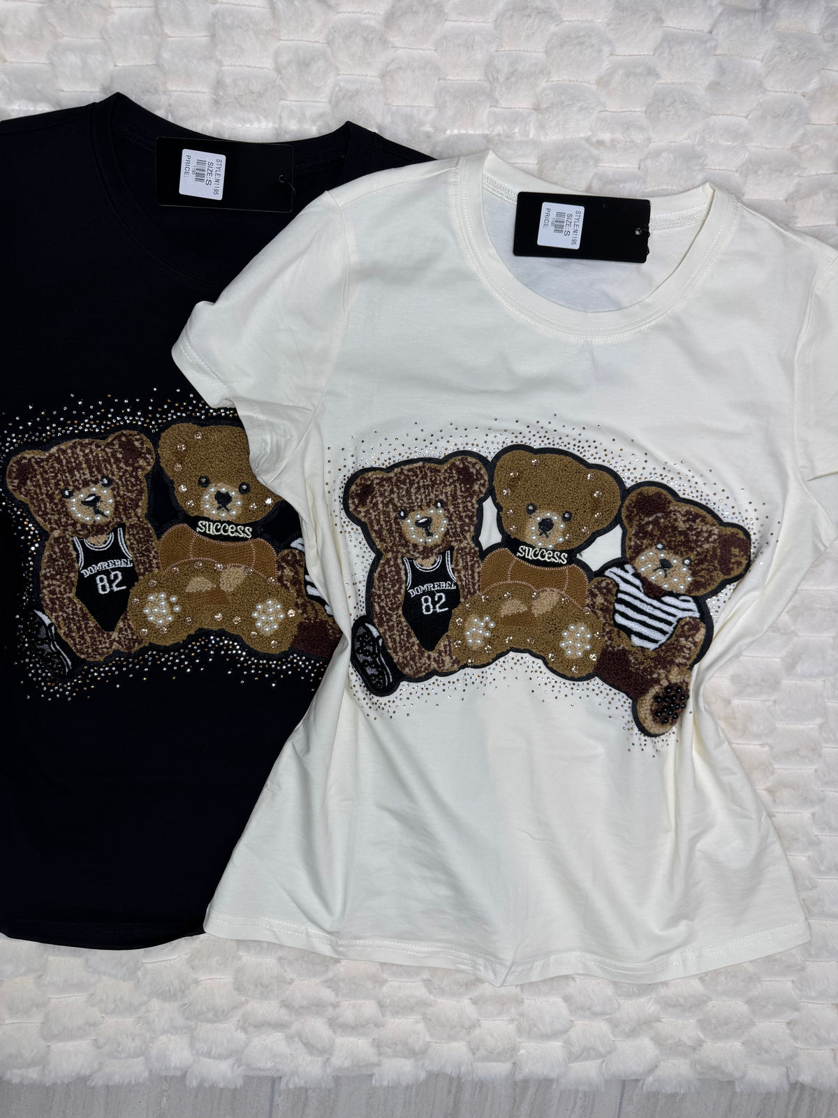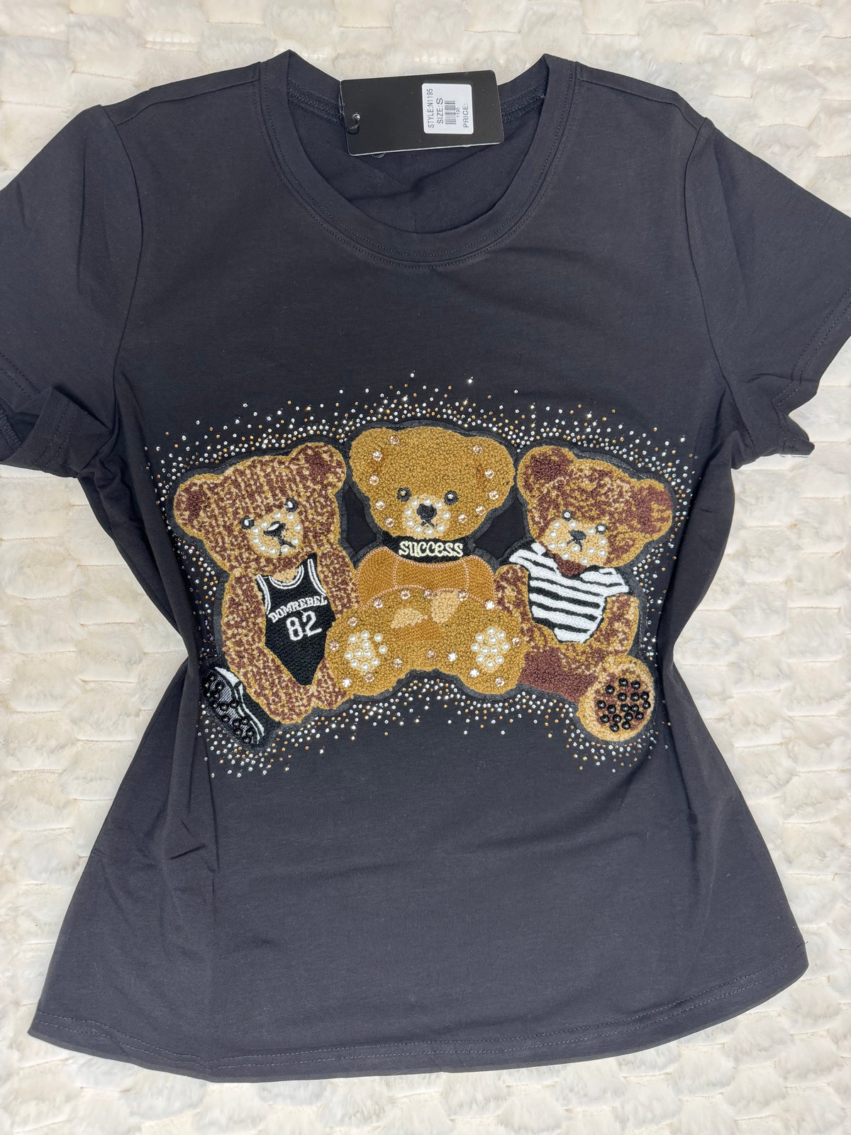 Inform when this item available N1195 Triple Threat Teddy Glam Tee with Rhinestones