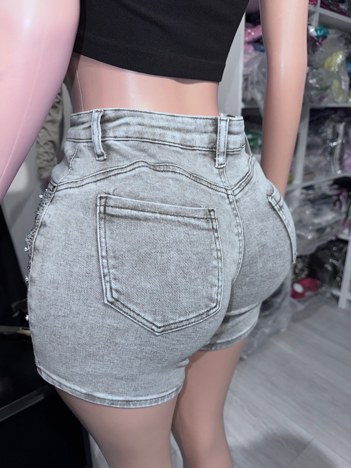 NR3067 Frosted Glam Side-Stone Shorts - Gray / Small